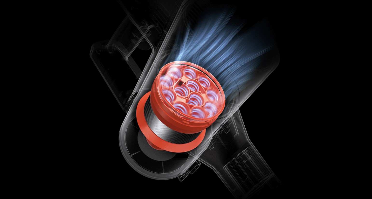 Оснащенный 12-конусной системой циклонического пылеотделения, пылесос создает мощную центробежную силу благодаря циклоническому воздушному потоку. Она эффективно отправляет крупные частицы на дно отсека для пыли, сохраняя плавный поток воздуха для повышения эффективности фильтрации.