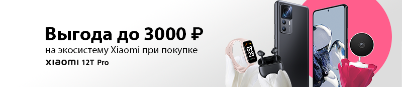 Приобретайте смартфон Xiaomi 12T Pro и получите скидку на дополнительный товар Xiaomi из представленного списка в заказе. Акция действует с 1 по 31 марта 2023 года.